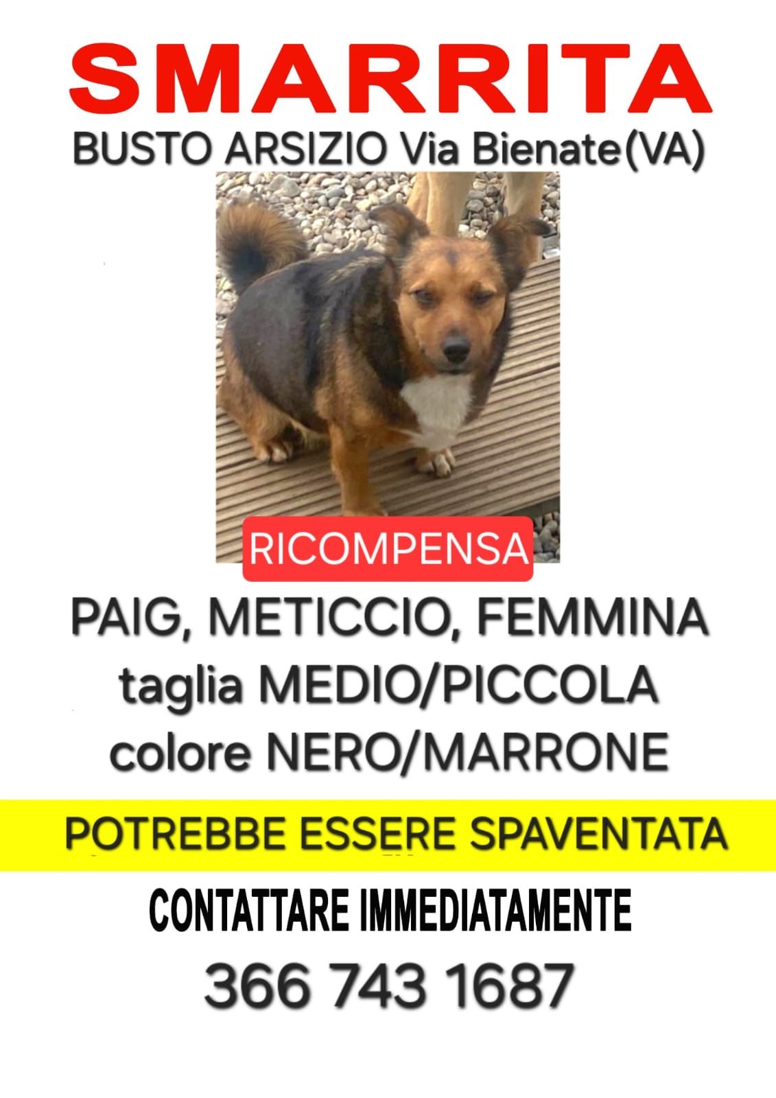 Da qualche giorno stiamo cercando una cagnolina scomparsa a Busto Arsizio/Sacconago (VA)
