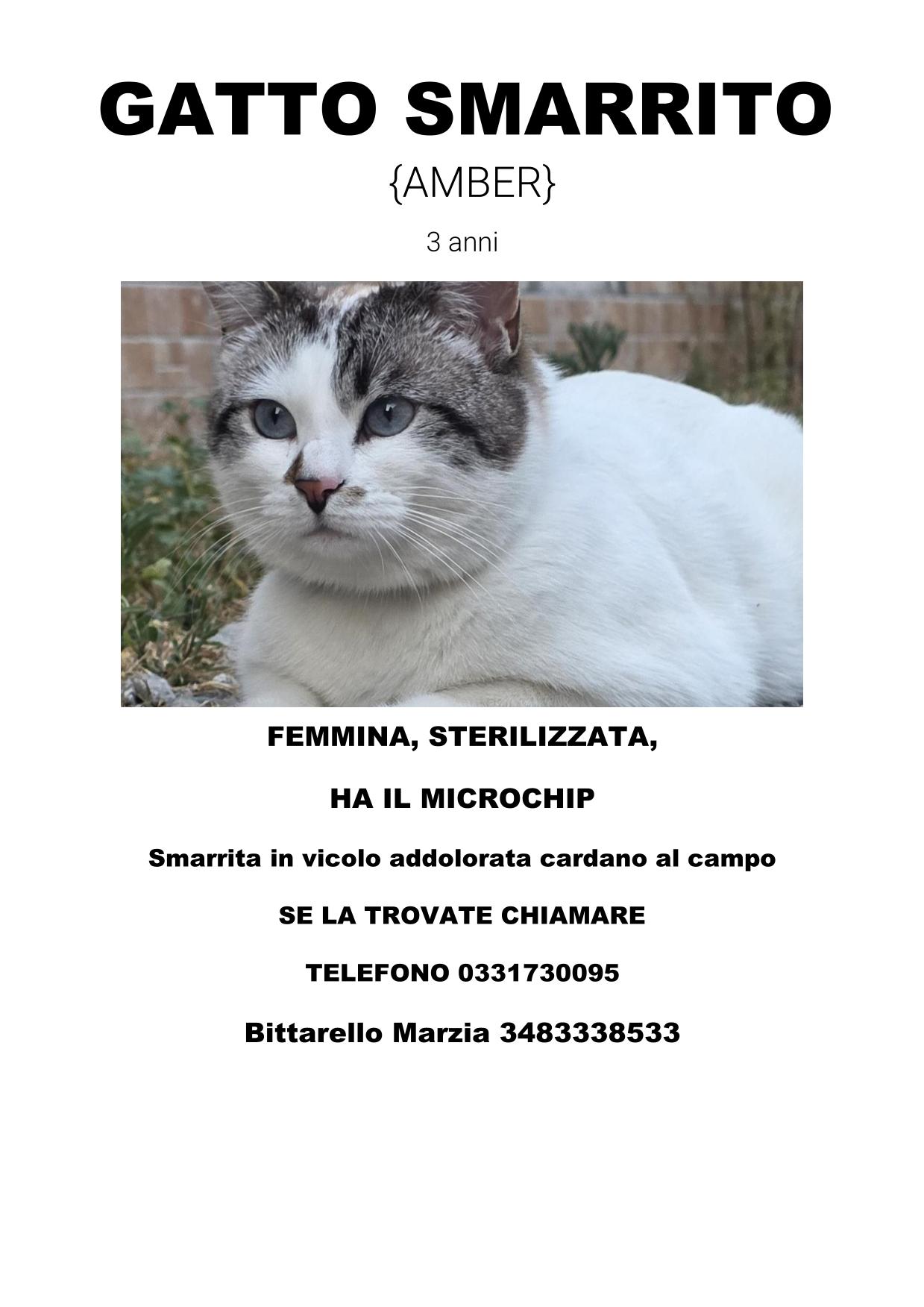 Questa micia si è persa in data 14-10-25 a seguito di una rincorsa in giardino di un altro gatto