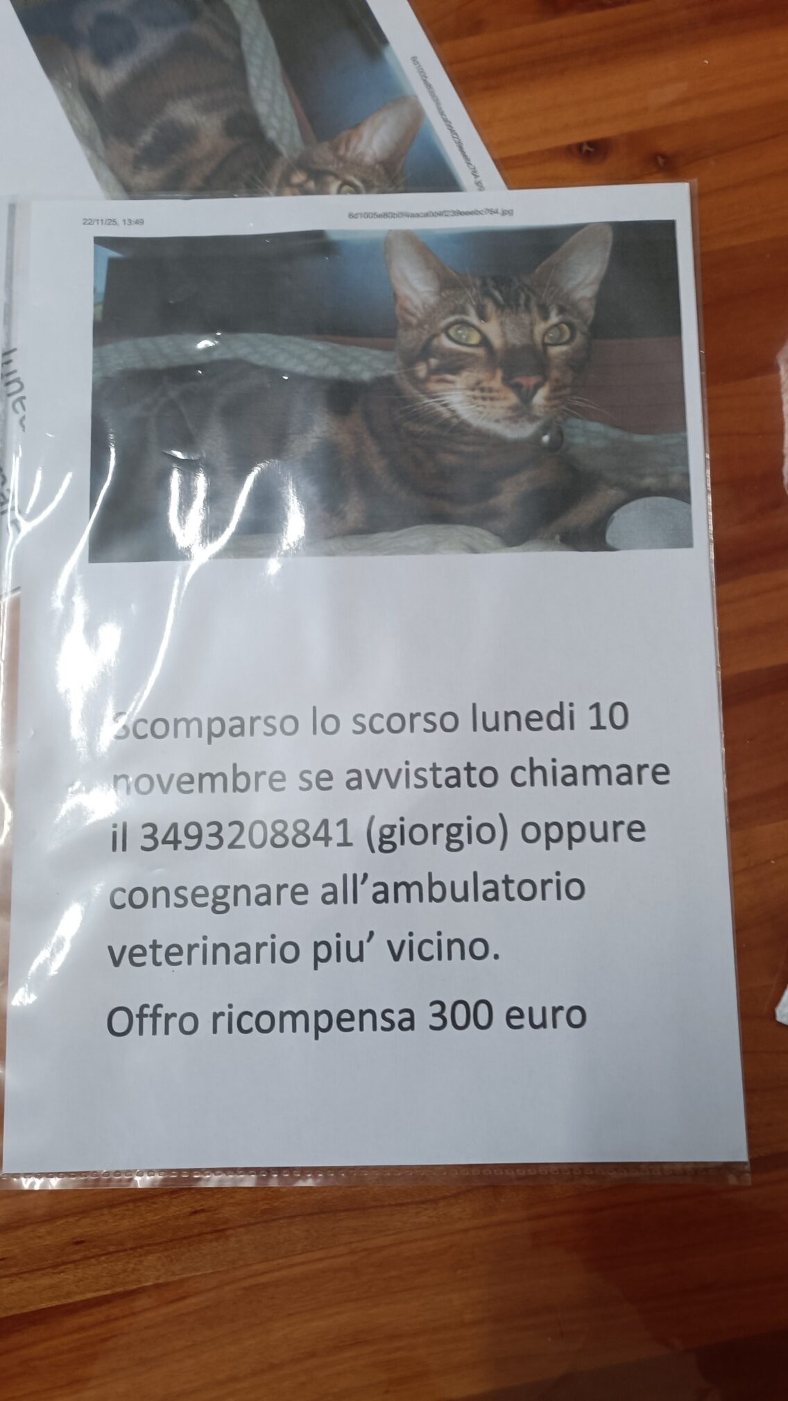 Salve, lo scorso lunedì 17 novembre dal cortile condominiale e' scomparso (certamente rubato) il mio cucciolo di bengala ;si chiama Vasilij e risponde a VAS! e' microchippato e castrato e a me intestato.