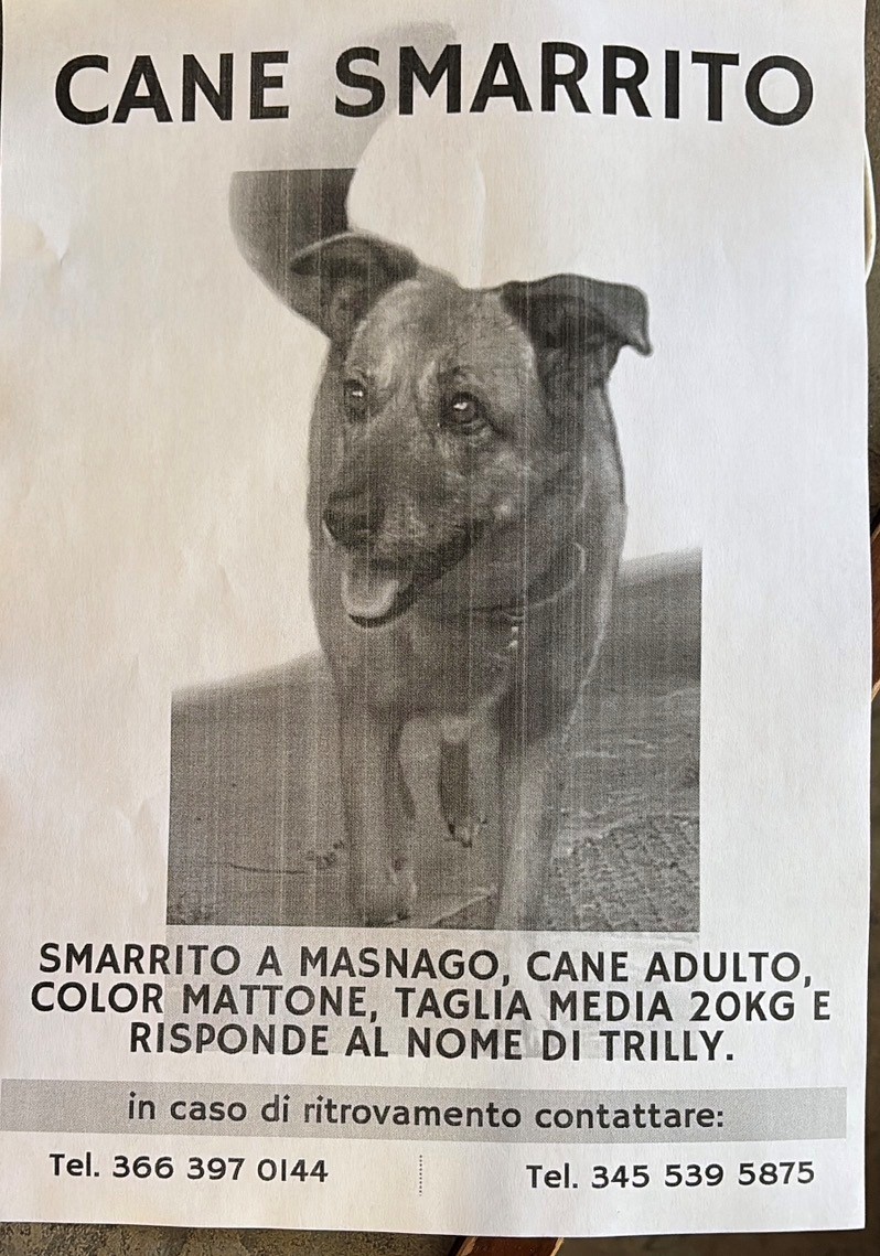 5 giorni fa abbiamo smarrito Trilly a Masnago e la stiamo cercando con un gruppo di amici e il supporto dell’associazione L’arte del levriero, ma purtroppo non riusciamo a trovarla.
